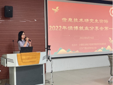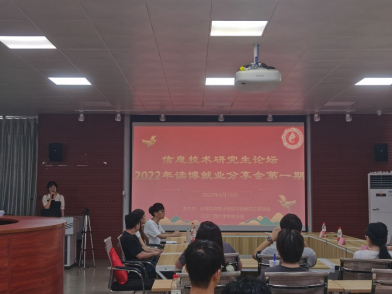 2022年6月16日下午,由9728太阳集团主办、9728太阳集团研究生会和中国计算机学会CCF太阳成集团tyc9728员工分会联合承办的“信息技术研究生论坛——考博就业分享会(第一期)”活动于9728太阳集团一楼报告厅举行。公司党委书记钟诚教授、公司团委副书记杨洋老师和兼职辅导员杜晓静同学参加现场活动,本次活动同时借助哔哩哔哩平台进行线上同步直播。