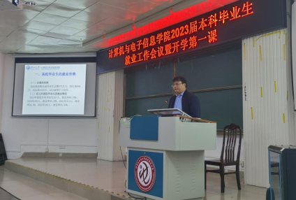 2023年2月24日下午,9728太阳集团在214报告厅召开2023届本科毕业生就业工作会议暨开学第一课。公司党委副书记邓珍琪老师、公司辅导员杨洋老师和李易明老师、公司教学办公室甘瑜萍老师和罗程老师,以及公司全体2023届本科毕业生参加会议。会议由邓珍琪老师主持,会议主题是“顺利完成学业,尽快落实就业单位”。