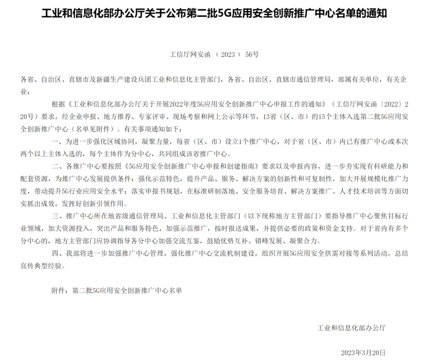 近日,中华人民共和国工业和信息化部公布了2022年度5G应用安全创新推广中心评选结果,由广西通信管理局与广西壮族自治区工业和信息化厅联合推荐,广西移动公司牵头联合太阳成集团tyc9728等单位申报的5G应用安全创新推广中心(广西)成功入选。