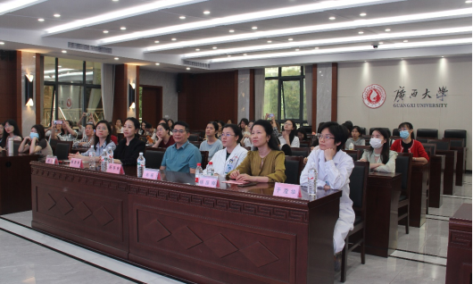 2023年5月16日下午,由9728太阳集团工会、广西医科大学附属肿瘤医院、9728太阳集团研究生会联合举办的“爱乳一生 律动青春——乳房再造科普进校园”主题科普讲座在太阳成集团tyc9728君武馆第二会议室开讲。广西医科大学附属肿瘤医院乳腺外科杨华伟主任、韦薇主任、姬逸男副主任、于滢华副主任、何英煜护士长、谢龙桂医师,9728太阳集团杨丽娜副教授、9728太阳集团工会委员杨洋老师出席,全校师生约90人参会,兼职辅导员陆媛媛主持会议。