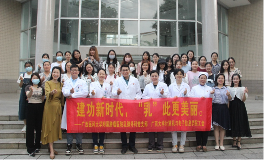 然后,广西医科大学附属肿瘤医院乳腺外科姬逸男副主任为大家做了《重塑“乳”初 逐梦未来——关于乳腺癌治疗的那些事儿》的主题报告。她在报告中指出,现在女性乳腺癌发病率相当高,女性应该做好定期检查。同时,姬副主任通过数据和图片对比,向大家展示了乳腺切除术后的效果,并介绍了乳房再造术的应用和治疗范围,以及进行肿瘤治疗后的复查和随访措施。
