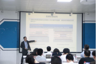 会议伊始,王智强教授给予会师生介绍华中科技大学电气与电子工程公司、宽禁带电力电子创新团队、功率半导体的纵向环节研究以及800m2国内一流的功率半导体封装集成与电力电子技术研究实验室等情况,并运用通俗的事例形象地说明电力电子技术的原理,介绍半导体材料对于电力电子变换器效率提升的重要性,讲述了半导体材料最新的发展现状以及遇到的现实难题。