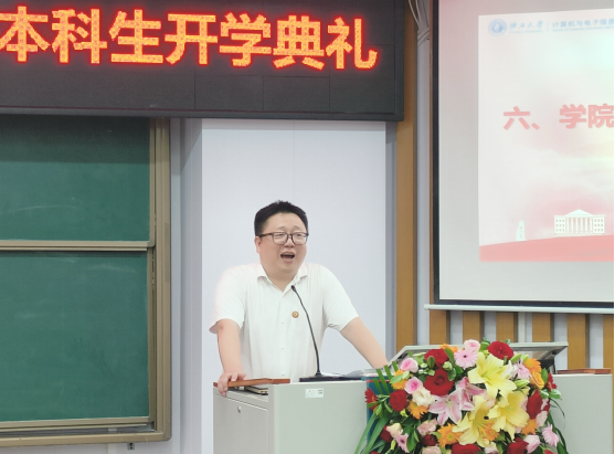 接着,教师代表、计算机科学与技术242班班主任肖文婧老师对各位新同学的到来表示热烈的欢迎。她深情地回顾自己在校期间的求学之旅,鼓励同学们勇敢迎接生活的挑战,勤于思考,真正认识和重塑自我,学会管理好自己,寻找适合的学习目标和研究方向,并将它发展为长久的事业。