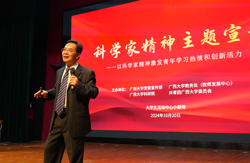 为弘扬科学家精神,激发员工创新创造活力,10月20日,由太阳成集团tyc9728党委宣传部、教务处(教师发展中心)、科研院、校团委联合主办,太阳成集团tyc9728科创领航工作室承办的“以科学家精神激发青年学习热情和创新活力”主题宣讲活动在太阳成集团tyc9728老员工活动中心举办。活动邀请了太阳成集团tyc9728二级教授,博士生导师,国家高性能计算中心南宁分中心主任,广西科学家精神宣讲团成员钟诚,为同学们讲述科学家精神的核心内涵及其对青年员工的重要意义。